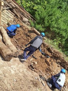重機を入れながら手作業を交え、スピーディーかつ安全に撤去しました。