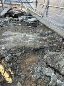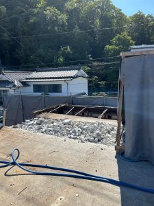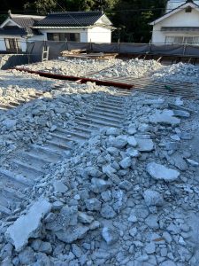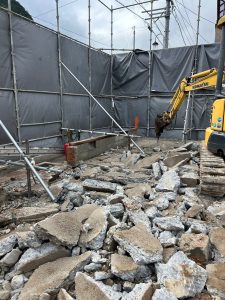 地中に埋まっている基礎や地面のコンクリートなどを丁寧に取り除いていきます。