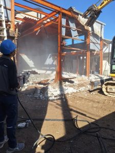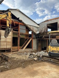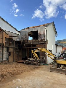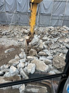 内装の片付けが終わると、いよいよ重機の出番です。