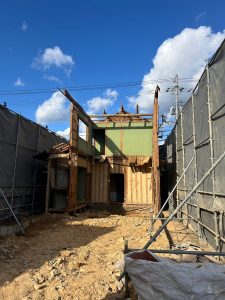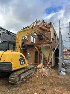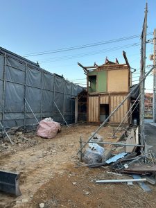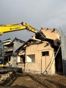 防音・防塵のための養生を徹底した上で、重機による本格的な解体を開始。安全を最優先に作業を行いました。