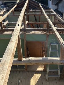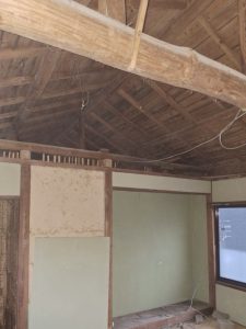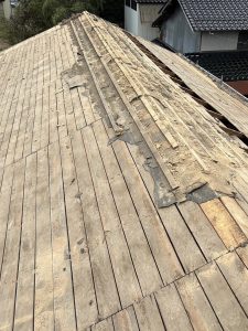 まずは手作業で内装材を分別し、屋根の瓦を一枚ずつ慎重に降ろしていきます。