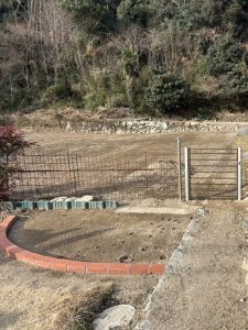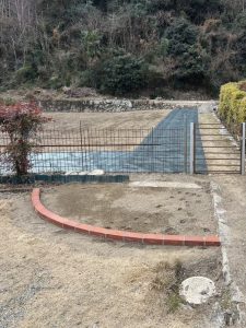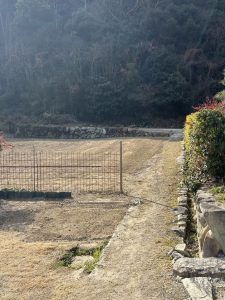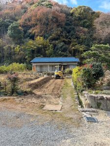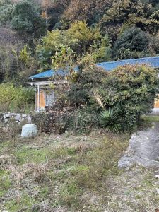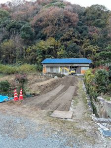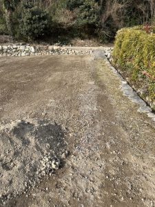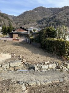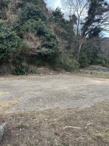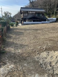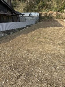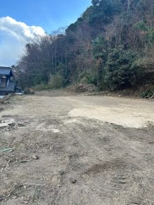 奥に小屋が建っていた場所ですが、解体後に地盤の転圧を行い、見違えるほど広々とした平坦な更地へと生まれ変わりました。