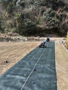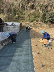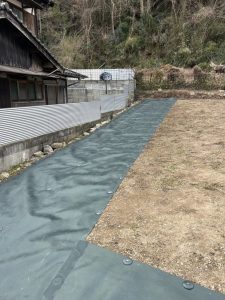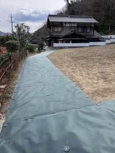 整地後でも季節によっては雑草との戦いが大変です。あらかじめシートを張っておくことで、将来の草刈りの手間を大幅にカット。お客様の大切な土地を、いつまでも美しく保てるよう工夫いたしました。