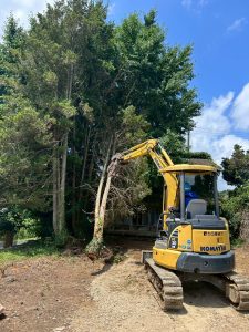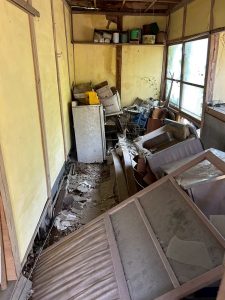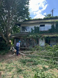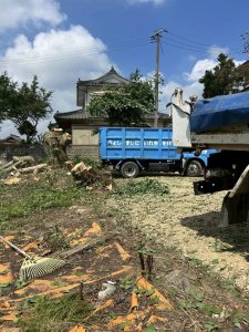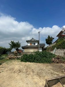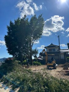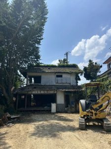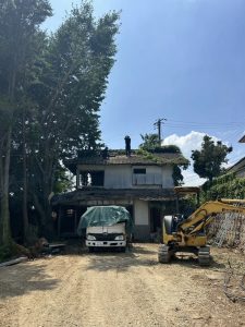 まずは建物の周りにある、作業の妨げとなる庭木や残置物をきれいに片付けていきます。