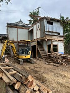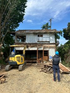 準備が整い、いよいよ重機で慎重に解体しつつ、現場で細かく仕分けを行いながら搬出していきます。