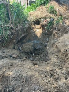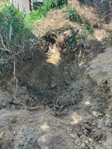 上部構造物がなくなった後は、地面の下を確認。古い基礎や埋まっているコンクリート塊をすべて掘り起こして撤去します。