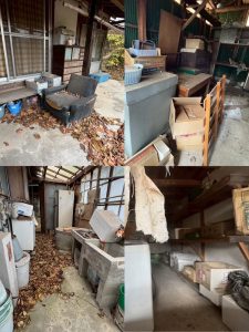 一軒家全ての不用品を回収いたしました。大型不用品や庭先の資材まで、スタッフが全て分別・搬出を行います。