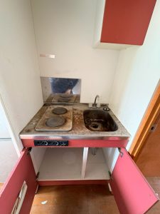 「作業前の様子です。水回りやエアコン内部にも、かなりの汚れが見受けられます。」